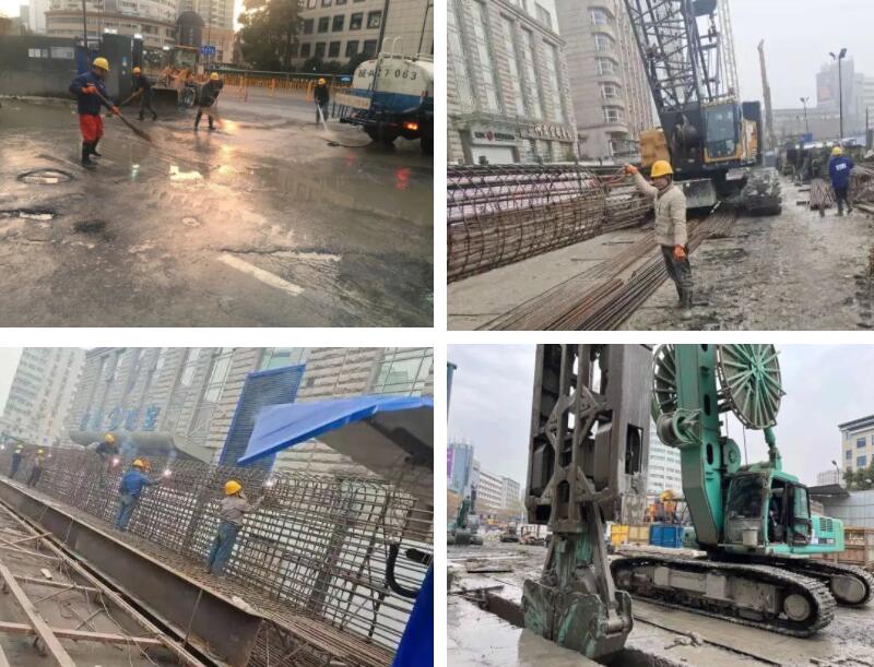 春节期间,杭州恶劣的天气给一线作业人员施工带来了很大的困难。1月25日至2月7日,长达13天之久的雨雪天气笼罩整个杭州,施工现场场地狭小泥泞,混凝土供应不畅,机器设备运行效率明显下降,作业人员体感舒适度极低。尽管环境艰苦,武林门项目团队仍超额完成了甲方单位下达的生产任务指标,并于1月29日完成了F出口地墙封闭。