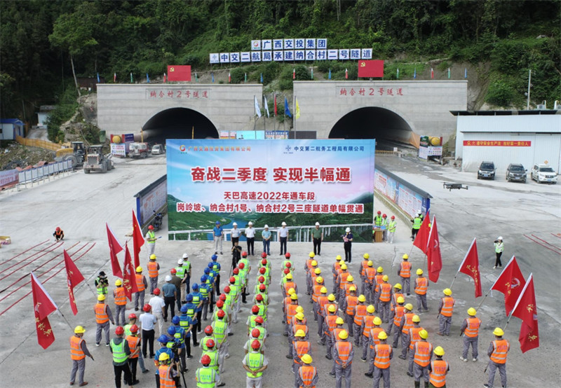 二航造!广西天巴高速3座隧道同步贯通