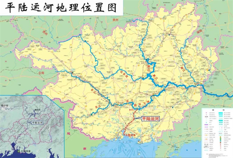 平陆运河是西江干流与北部湾的江海联通工程,起点位于南宁横州市西津库区平塘江口,经钦州灵山县陆屋镇沿钦江进入北部湾,全长约135公里,估算总投资727亿元。项目以航运功能为主,结合供水、灌溉、防洪、改善水生态环境等,航道按内河Ⅰ级标准建设,通航5000吨级船舶。平陆运河作为西部陆海新通道建设的重要牵引性工程,将为我国广袤西南、西北地区开辟新的路径最短的出海通道,缓解长江、珠江通过能力紧张局面,増强水运通道抗风险能力。项目建成后,与正在研究论证的湘桂运河衔接,将纵向贯通长江、珠江及北部湾,对于加快广西经济社会发展、促进中国—东盟经贸合作具有十分重要的意义,为构建以国内大循环为主体、国内国际双循环相互促进的新发展格局提供重要的基础设施支撑。