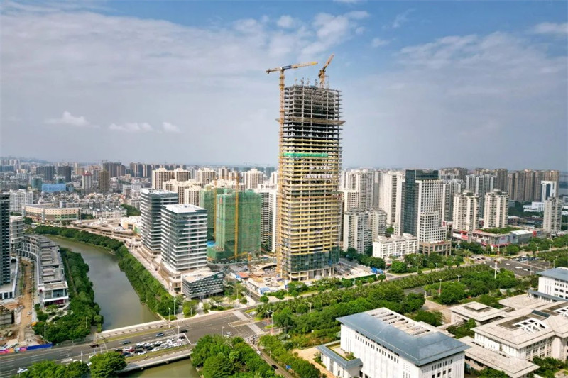海口中交国际中心是海南省重点项目,位于海口市大英山CBD核心区东部延长线上,由中交海投、中交二航局投资,中交二航局承建,是一个集办公、商业为一体的高端总部经济商务综合体项目,由一栋地上44层超高层主楼和一栋3层商业裙楼组成,总建筑面积13.6万平方米,2020年5月20日开工建设,预计2023年9月竣工。