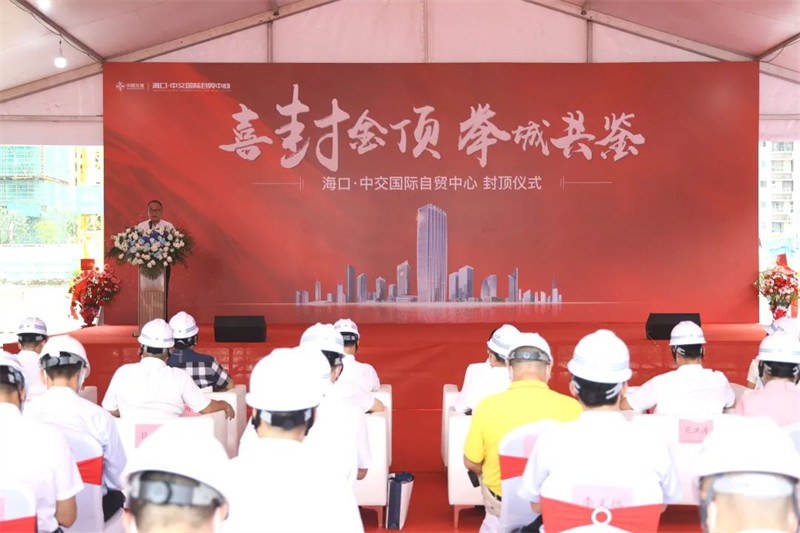 游斌在致辞时表示,中交二航局自20世纪90年代初入琼以来,始终坚持融入海南、扎根海南、建设海南。海口中交国际自贸中心是中交集团倾力开发的5A级总部商务新标杆,是中交二航局携手中交海投助力海南自贸港建设打造的又一座城市新地标,项目建成后必将进一步提升城市整体形象,激发发展新动能,促进海南自贸港建设。中交二航局将以海口中交国际自贸中心主楼封顶为契机,赓续二航人特别能吃苦、特别能战斗、特别能奉献的优良传统,高质量、高标准、高效率推进项目后续建设,全力打造超高层全钢结构建筑精品工程、现代化国际化新海口样板工程,为海南加快建设共建共享、共同富裕的自由贸易港再立新功、再作贡献!