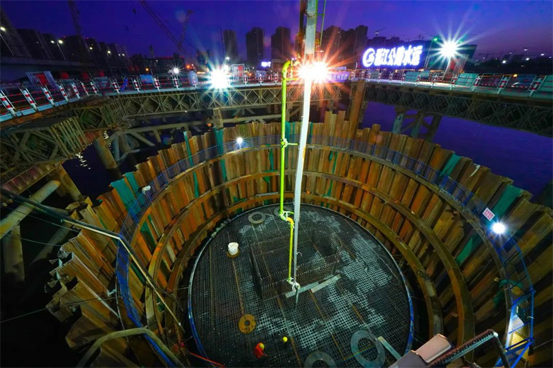 桥梁基础施工期间,首次在钱塘江上采用圆形钢板桩围堰与多边形锁口钢管桩围堰作为止水围护结构,大大缩短了水中施工周期,减小潮水对基础施工的安全风险。