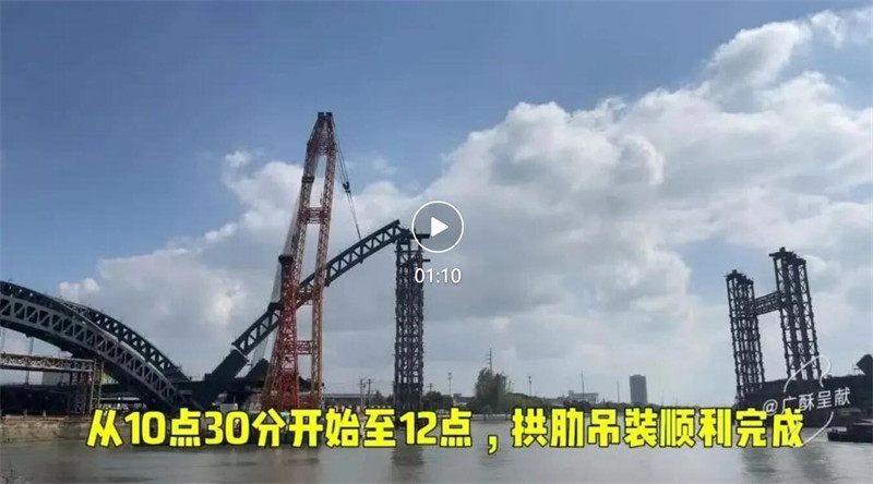 无锡菱湖大桥首节主拱肋成功吊装,为后续施工积累了宝贵的经验,为中跨上构施工打下了坚实的基础。