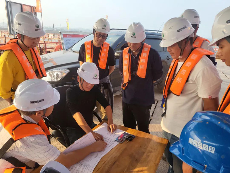湘江特大桥水中主墩为11号墩至14号墩,共计60根桩基,各桩基直径2.5米,最长桩长82.5米。大桥施工地区地质结构极其复杂,属于库区高水头下岩溶强烈发育地质,串珠状溶洞深度最大达50米,桩基施工难度很高。面对施工难题,项目部团队万众一心,集思广益,围绕钻进工艺、溶洞回填、钢护筒跟进和孔底探溶等多次召开专家评审会,商讨解决方案,组织人员培训,优化施工组织方案,克服疫情带来的材料紧缺等问题,最终顺利完成全部桩基浇筑任务。