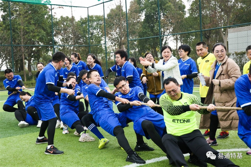 在脑力与体力并存的趣味比赛“手忙脚乱”、“两人三足”、“拔河比赛”中,大家较量智力、PK体力,无论是团队的竞技较量,还是啦啦队的摇旗呐喊,充分展示了“易通人”强健的体魄和蓬勃向上的精神风貌。