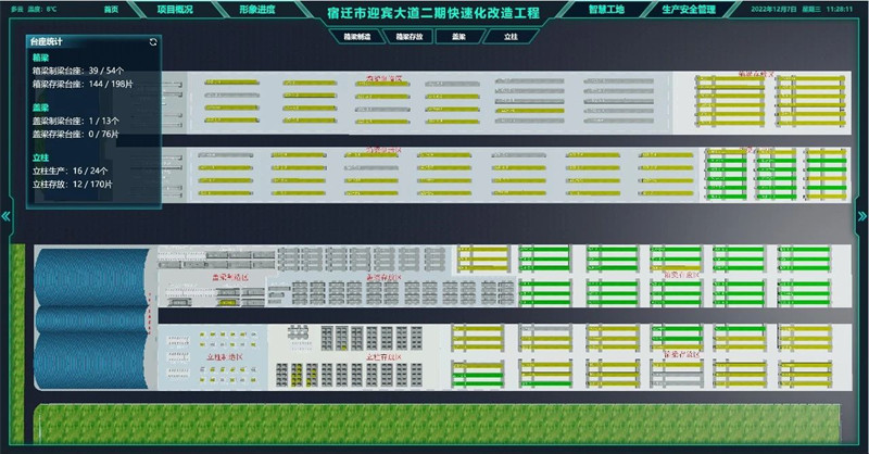 相比于传统的施工方式,装配式施工具有质量可靠、建造速度快、精细化程度高、安全系数高等优点也是宿迁市首例采用预制装配式技术试点项目。但在不到一年的时间里,完成824片预制箱梁、252根预制立柱、160个节段预制盖梁以及钢梁等大型构件以误差不超过3毫米精度拼装到位,这对项目组织提出了严格的要求。为此,项目部基于中铁大桥局的BIM平台,通过采用信息化管理系统,以智能化打造三厂建设,以信息化推动前后场联动,全速推进工程进度。