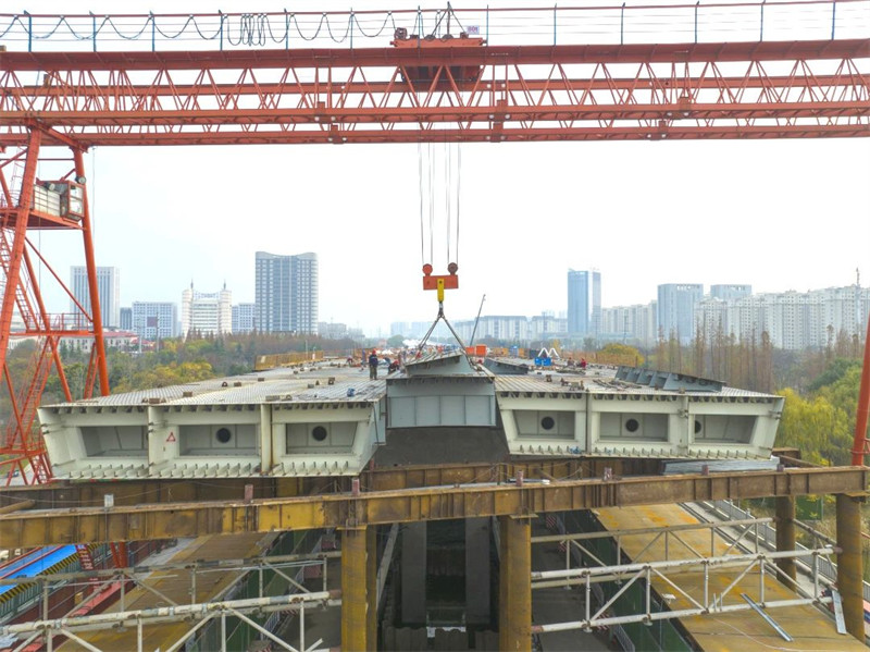 首个跨路口钢梁顺利合龙,整体工程向前迈出一大步。