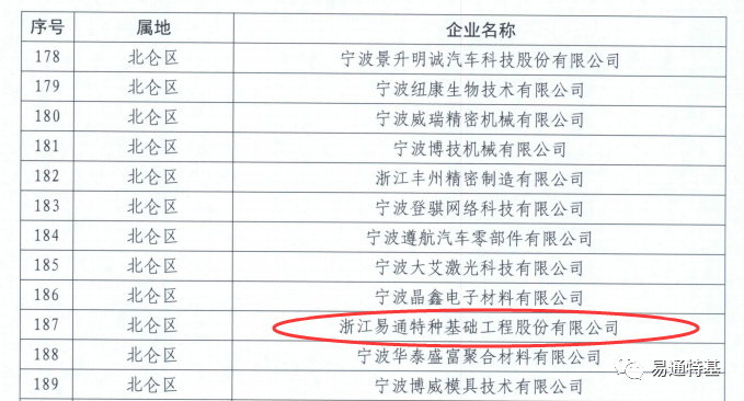 近日,宁波市经济和信息化局发布《2023年度宁波市“专精特新”中小企业拟认定名单》,易通特基荣耀上榜,并成功通过认定!